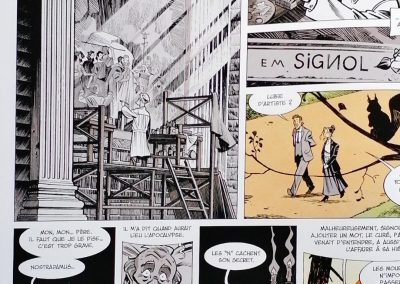 Pour en revenir au cœur de cette BD, il faut savoir que Nostradamus fut un apothicaire né en 1503. Mystique visionnaire, astrologue émérite, de nombreuses prédictions se sont plus ou moins réalisées à travers les siècles, le nimbant d’une aura de mystère. Cette date de la fin du monde passionne d’emblée le lecteur qui s’interroge sur les secrets contenus dans les tableaux.