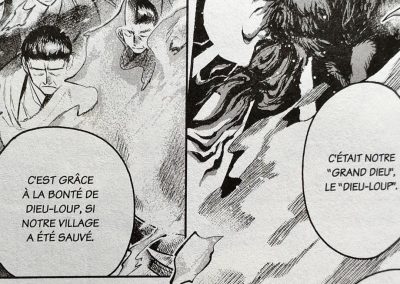 Ce manga nous démontre combien l’humanité est cruelle. Ce n’est pas le Dieu-Loup le monstre de l’histoire, mais bien les humains. Ils n’ont aucun scrupule à haïr un enfant pour sa différence, puis le sacrifier sans scrupules. Ils le tolèrent dans leur village, mais lui font bien sentir qu’il ne leur sert à rien. Insultes, faim et froid jalonnent le quotidien de Tsubaki.