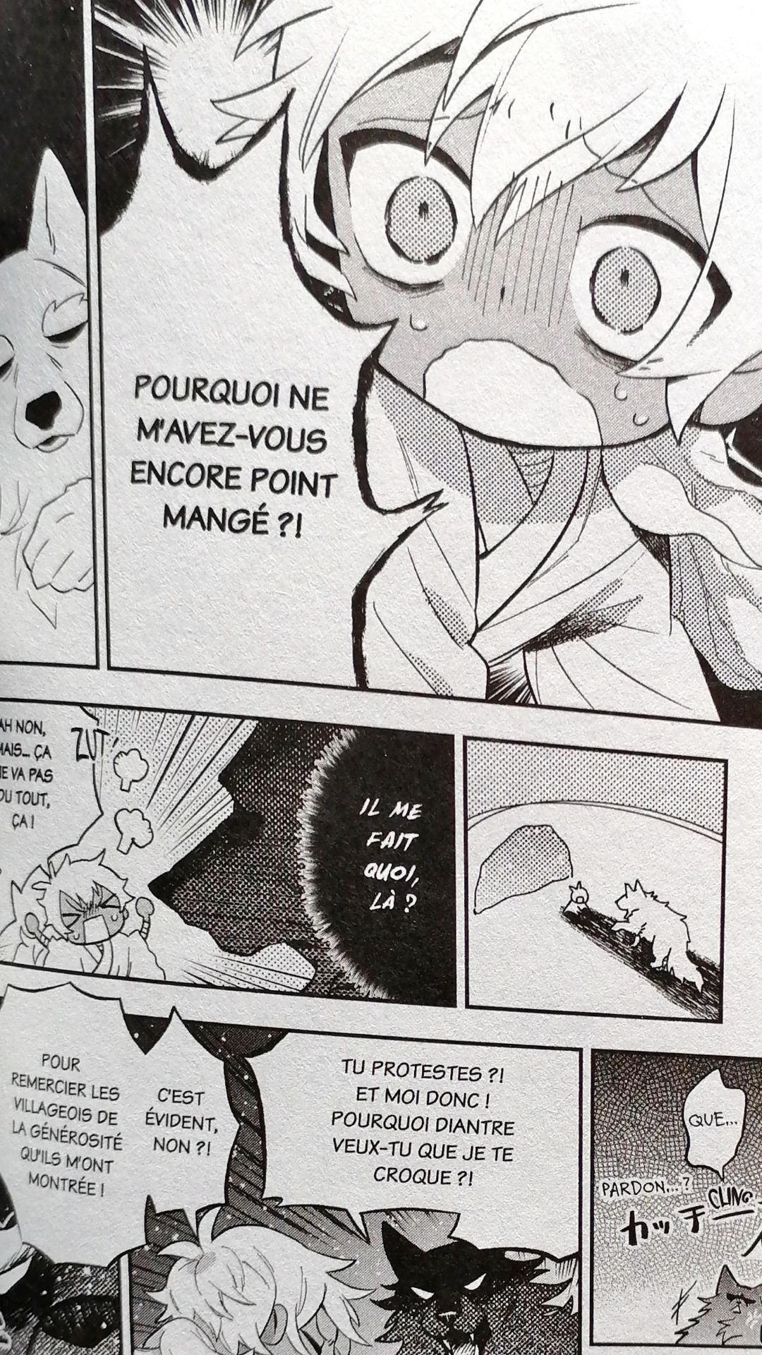 Les villageois honnissent Tsubaki pour son apparence ; ils la diabolisent, tandis qu’ils révèrent le Dieu-Loup nanti de sa fourrure rouge flamboyant. Couleur qui paraît répugnante dans d’autres régions, autant auprès des hommes que de ses congénères. Tous deux ont récolté l’ire des villageois pour la même raison, une forme de xénophobie cruelle. Le Dieu-Loup y repense, mais préfère ne pas en parler à Tsubaki.