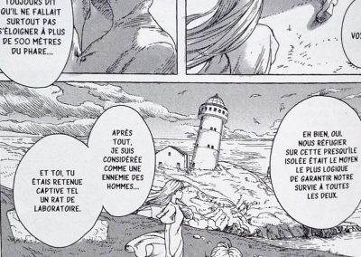 Si l’humanité apprenait qu’Erio est capable de produire de l’électricité, cela lui serait très préjudiciable ; aussi, Ange l’a cachée dans un phare isolé pendant de longues années. Elles mènent une vie tranquille, jusqu’à la mort de Boss. Erio ne peut se résoudre à abréger ses souffrances, son cancer l’achève et elle prend conscience que la vie est fragile et non éternelle, contrairement à celle de son amie.