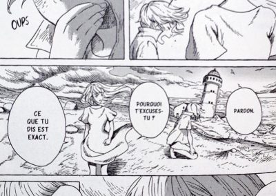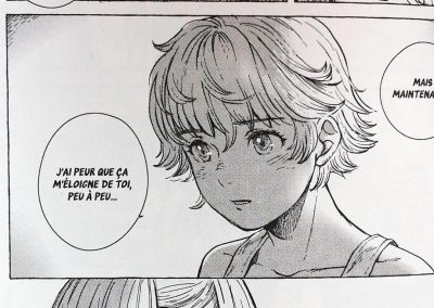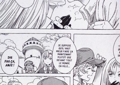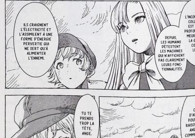 Visuellement de toute beauté, ce manga implante des décors travaillés en peignant une dystopie futuriste qui embrasse l’univers steampunk de façon novatrice. Les expressions sont fortes, les hachures renforcent l’identité de cet univers si singulier au galbe sépia. La réflexion autour de l’humanité et de l’IA est soulevée avec une certaine poésie ; en revanche, le lien entre Erio et Ange n’est pas clair : Ange l’a élevée comme une mère, mais Erio est désormais grande et la considère très différemment…