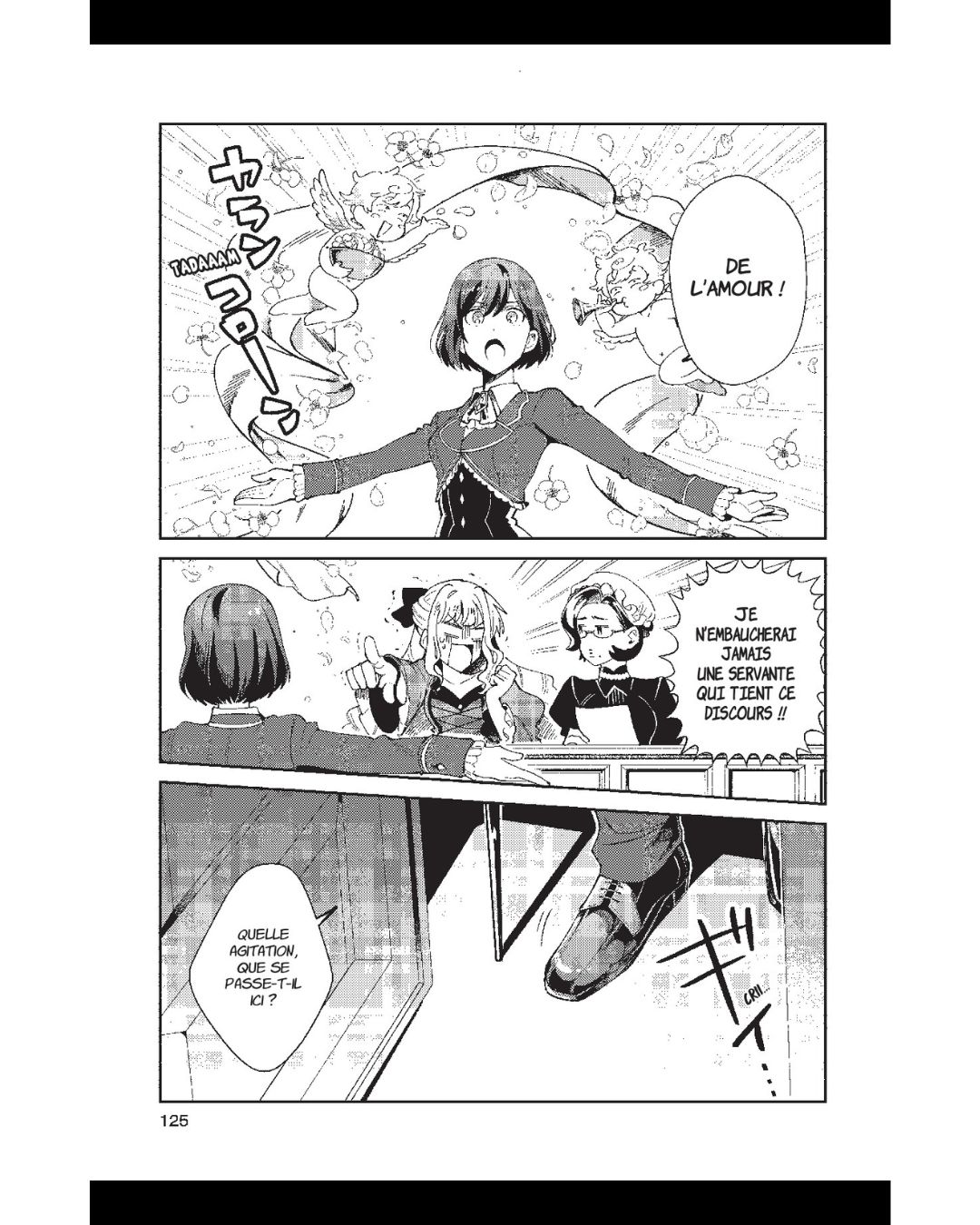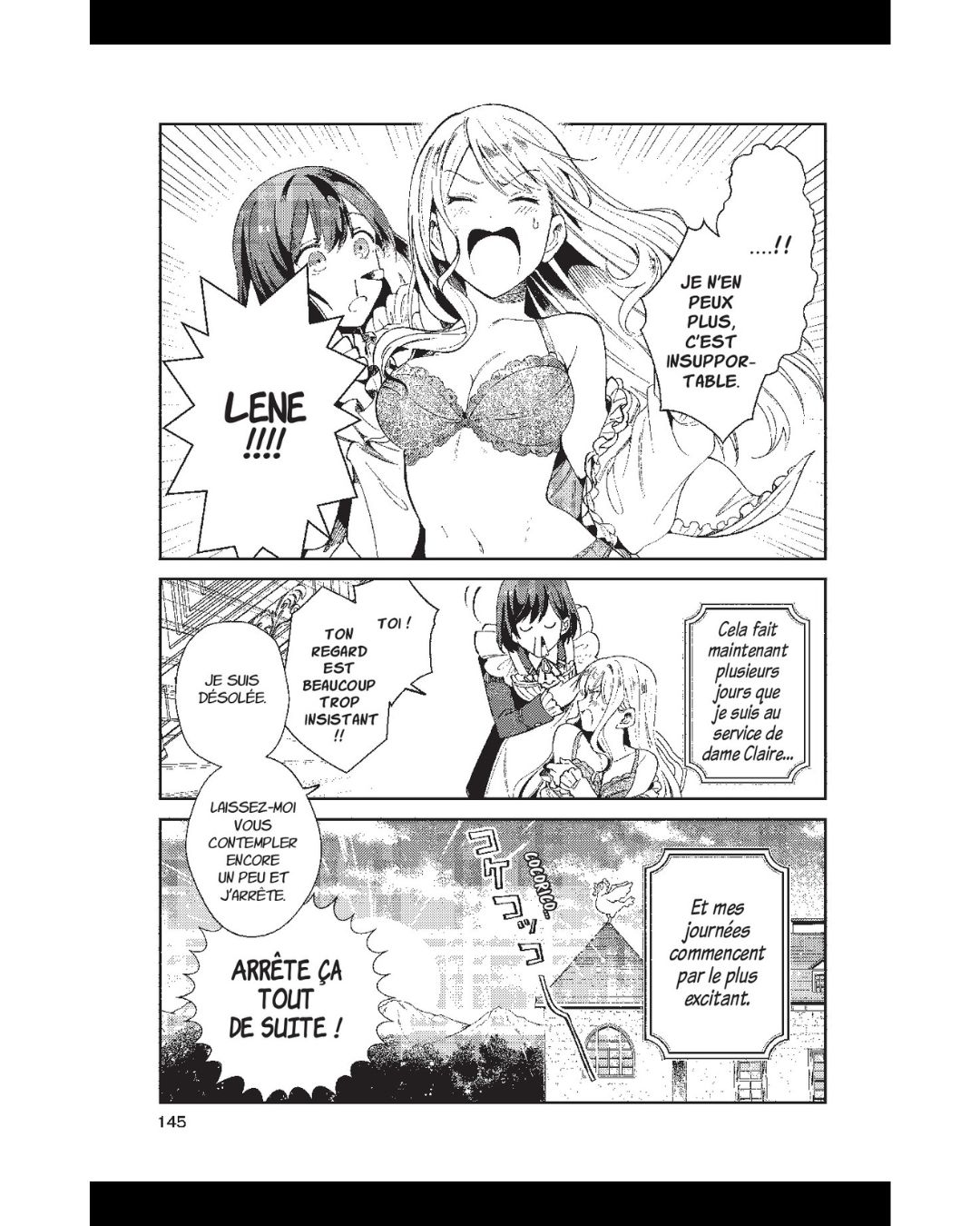 Je note toutefois un faux raccord avec la petite histoire de fin. Dans tout le manga, Rae idolâtre Claire. Mais à la fin, elle remet ses goûts en question concernant le chocolat. « Vous avez flairé son talent à travers cette boisson, ou vous avez simplement mauvais goût… » « Que dis-tu…? » « Je disais juste que je vous aimais, dame Claire. » Ça me semble plutôt incohérent… Elle vénère chaque trait de caractère de Claire, y compris ses défauts. Alors, qu’elle remette en question ses goûts et grime sa désapprobation sous le couvert de son amour casse complètement son personnage…