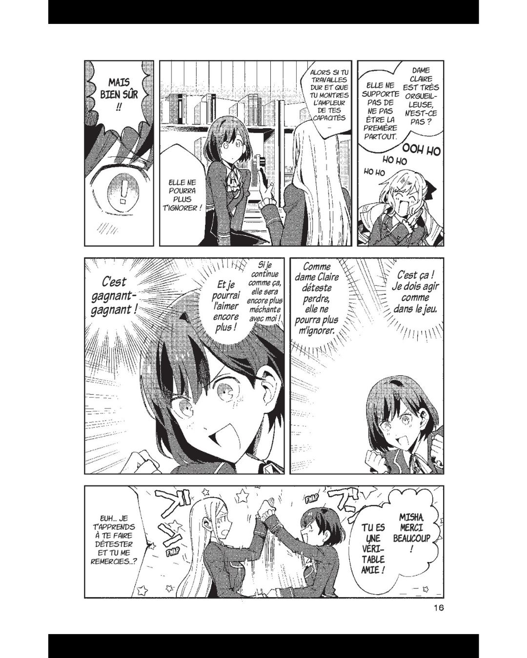 Misha est la colocataire de Rae, elles partagent la même chambre au sein de l’Académie de Bauer. Je vous jure que ça me fait bizarre de tomber sur un personnage qui porte mon prénom… C’est rare de tomber dessus. Misha, donc, est amoureuse du Prince Yu. Chaque protagoniste développe ses propres relations amoureuses, ce qui amène des situations explosives, comme lorsque Yu manifeste de l’intérêt envers Rae lors de la partie de poker puisqu’elle a deviné qu’il trichait, ce qui enflamme Misha. Alors que Rae n’a que faire des Princes ! Seule Claire l’intéresse et elle ne s’en cache pas, au contraire !