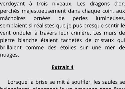 Ce pavé de 672 pages se lit facilement. La plume est belle, très poétique dans cette Chine fantaisiste, peuplée de Phénix et de Dragons. Toutes les descriptions sont riches d’odeurs, de couleurs, de textures, de puissance ; de brocart, de jade, de fleurs délicates, de thés savoureux, de nuages vaporeux… On retrouve toute la poésie chinoise dans ce chef-d’œuvre qui sera certainement en première place de mon Top 5 2024. Il a su combiner romance et epic fantasy pour un résultat enivrant. Les combats sont très bien décrits, agrémentés d’une foule de détails très esthétiques qui m’ont remémoré la bonne époque de Tigre et Dragon et Le Secret des Poignards Volants ; plus récemment White Snake et sa suite, Green Snake.