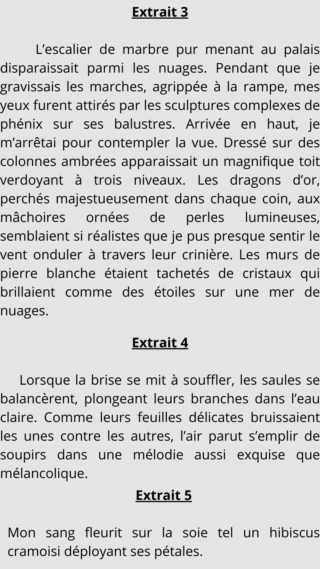 Ce pavé de 672 pages se lit facilement. La plume est belle, très poétique dans cette Chine fantaisiste, peuplée de Phénix et de Dragons. Toutes les descriptions sont riches d’odeurs, de couleurs, de textures, de puissance ; de brocart, de jade, de fleurs délicates, de thés savoureux, de nuages vaporeux… On retrouve toute la poésie chinoise dans ce chef-d’œuvre qui sera certainement en première place de mon Top 5 2024. Il a su combiner romance et epic fantasy pour un résultat enivrant. Les combats sont très bien décrits, agrémentés d’une foule de détails très esthétiques qui m’ont remémoré la bonne époque de Tigre et Dragon et Le Secret des Poignards Volants ; plus récemment White Snake et sa suite, Green Snake.