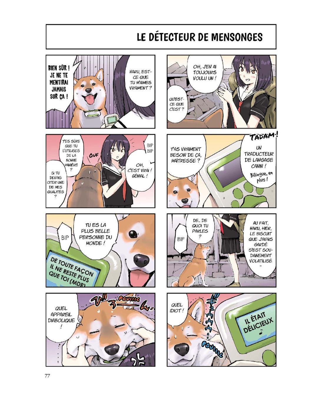 Il faut savoir que parmi tous les chiens, les Shibas sont ceux que je tolère le mieux. Yoshi a une Shiba blanche qu’il adore. Elle le suit dans tous ses voyages, c’est très mignon. Il poste souvent des photos. Du coup, ce manga m’a fait sourire dès la première page.
