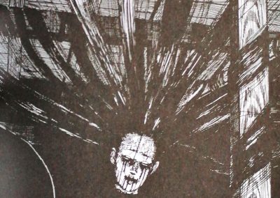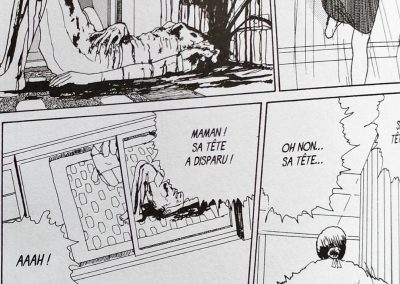 Sanglant, teinté de folie, de mysticisme ; Le Déserteur happe son lecteur qui se demande dans quelle direction l’histoire va évoluer. Junji Ito est imprévisible, on ne parvient pas à deviner comment ses histoires se terminent. Et c’est bien tout ce panel de possibles horreurs qui hérisse. La mise en scène est très efficace, notamment celle de la tête de Chiemi au grenier. Le père va voir ce qui se passe, sa deuxième fille le rejoint et le découvre… mort de peur ! La lampe qui éclairait son visage tombe sur le plancher pour dévoiler la tête coupée de sa sœur aînée. Les cheveux de cette dernière ont leur vie propre, ils soulèvent les paupières mortes de Chiemi qui laissent son regard vitreux se poser sur eux, tout en soulevant sa bouche dans un rictus grotesque. Et jusqu’au bout, le lecteur ignore ce qui hantait le grenier pour posséder la tête de la jeune femme. Les rats ne sont pas à l’origine de cette curieuse décapitation.