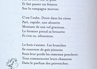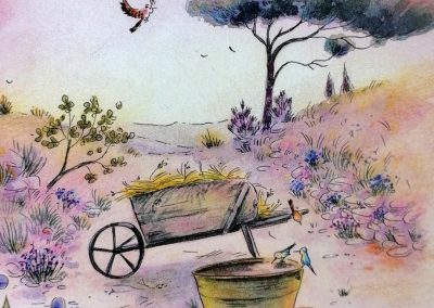 Chaque page se découpe ainsi : un poème ainsi qu’une page illustrée, à droite ou à gauche. Barbara Brun illustre ce recueil avec beaucoup de candeur. Les teintes pastelles rendent dignement hommage à la Provence dont je suis originaire, surtout la couleur lavande dans Rêverie et La Chanson du grillon. Rêverie est par ailleurs mon poème préféré dans ce petit recueil.