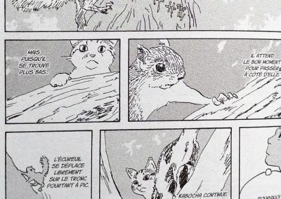 Les illustrations sont extrêmement réalistes, principalement celles des animaux. Tous les mouvements félins sont exacts ! La façon dont Kabocha s’étire, se toilette, saute pour jouer avec son humain, grimpe aux arbres… et même lorsqu’elle tombe !