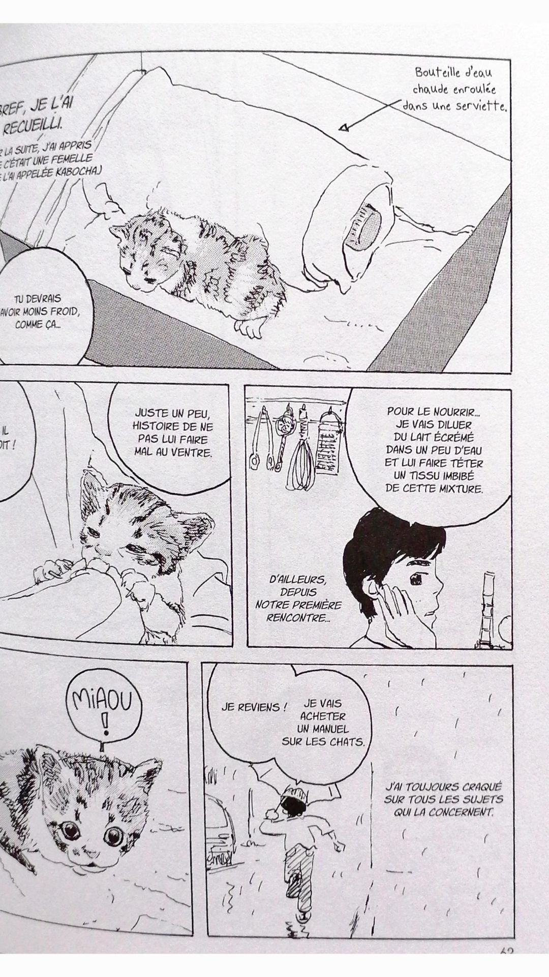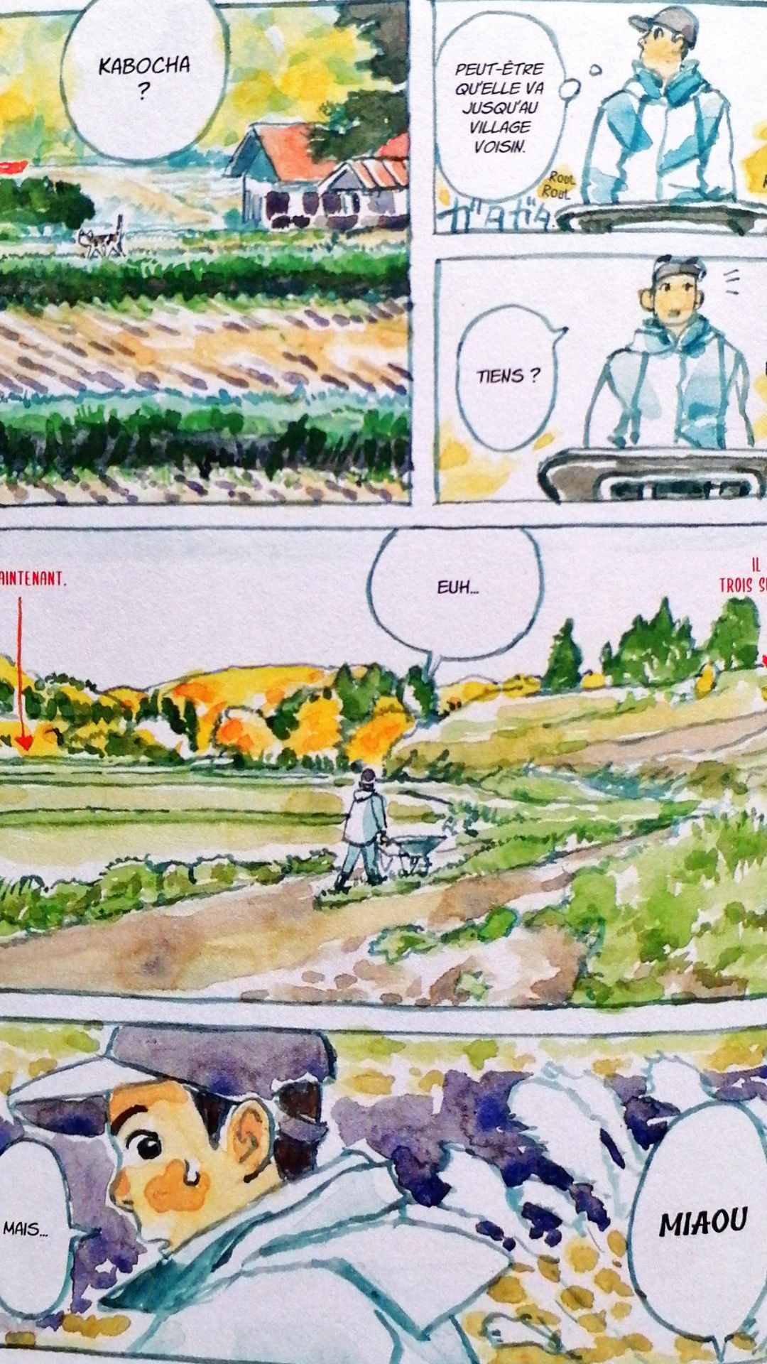 En tout cas, le héros aime énormément Kabocha, il s’inquiète toujours pour elle, vérifie qu’elle va bien, ne manque de rien. Il lui parle régulièrement, notamment avec des miaous ; Kabocha ne reconnaît pas son prénom à force ! Sans doute parle-t-elle un langage moitié félin, moitié humain ?