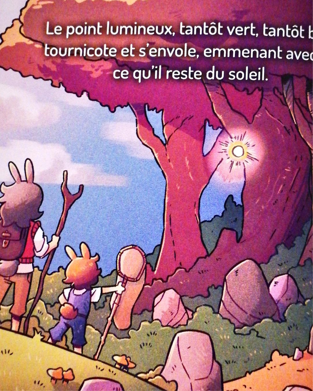 Cette leçon nous est donnée par un lapin anthropomorphe qui a l’air pétri de sagesse. On le discerne en tant que conteur, très à l’écoute de son environnement. J’aurais aimé voir la mère et le père de Carotte, les visuels à la fin m’ont beaucoup plu : on découvre une maman mécano et un papa cool un peu rebelle ; ça augure de belles histoires ! Peut-être seront-ils présents dans le Tome 2 ?