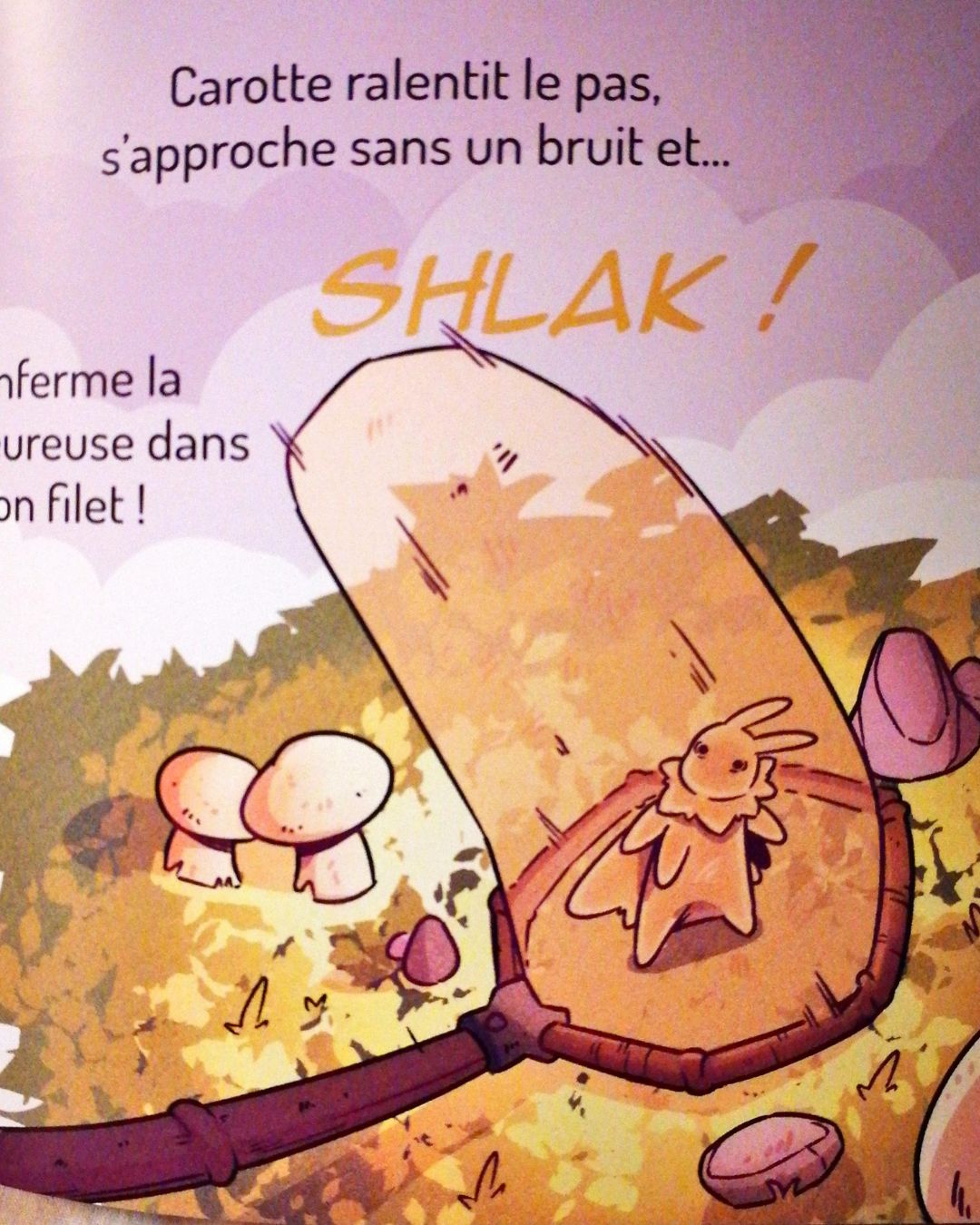 Graphiquement, c’est mignon et coloré. Les planches de fin incluent une ébauche du personnage de Carotte, plusieurs croquis avant le définitif. Le premier tirage de ce Tome 1 souffre de 2 petites coquilles qui ne figureront pas lors des réimpressions ultérieures.