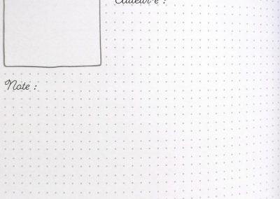 Les pointillés sont gris, vous pouvez classer vos livres selon vos envies en traçant vos propres lignes/motifs. Il est possible de remplir la double-page complète pour développer l’univers du livre en parlant par exemple des personnages. Ou d’utiliser les lignes/pochoirs pour marquer des scissions entre vos lectures. Laissez libre cours à votre créativité !