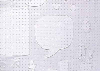 L’atout de ce cahier réside dans sa personnalisation. Le pochoir propose 22 motifs, dont le cadre qui sert de modèle pour la présentation de livre. Le pochoir inclut une règle de 19,7cm sur le côté droit. Le plastique est toutefois un peu trop souple, les motifs ont tendance à se décaler, notamment le pot de fleurs.