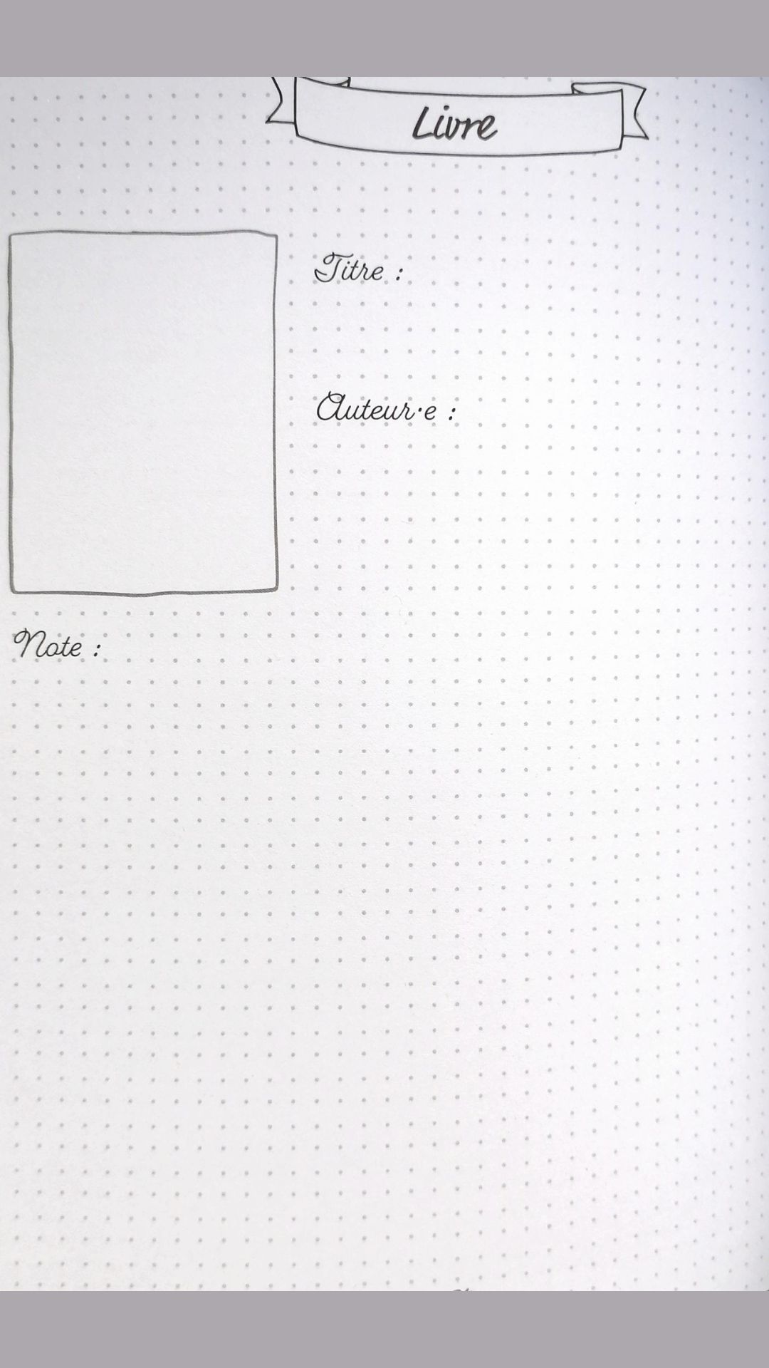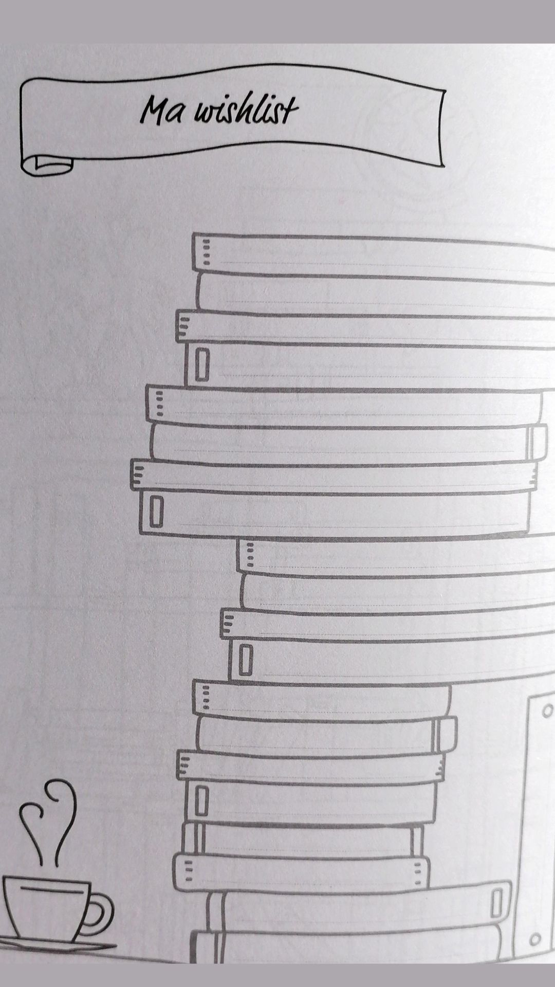 Les pointillés sont gris, vous pouvez classer vos livres selon vos envies en traçant vos propres lignes/motifs. Il est possible de remplir la double-page complète pour développer l’univers du livre en parlant par exemple des personnages. Ou d’utiliser les lignes/pochoirs pour marquer des scissions entre vos lectures. Laissez libre cours à votre créativité !