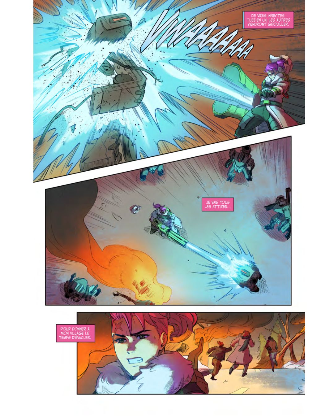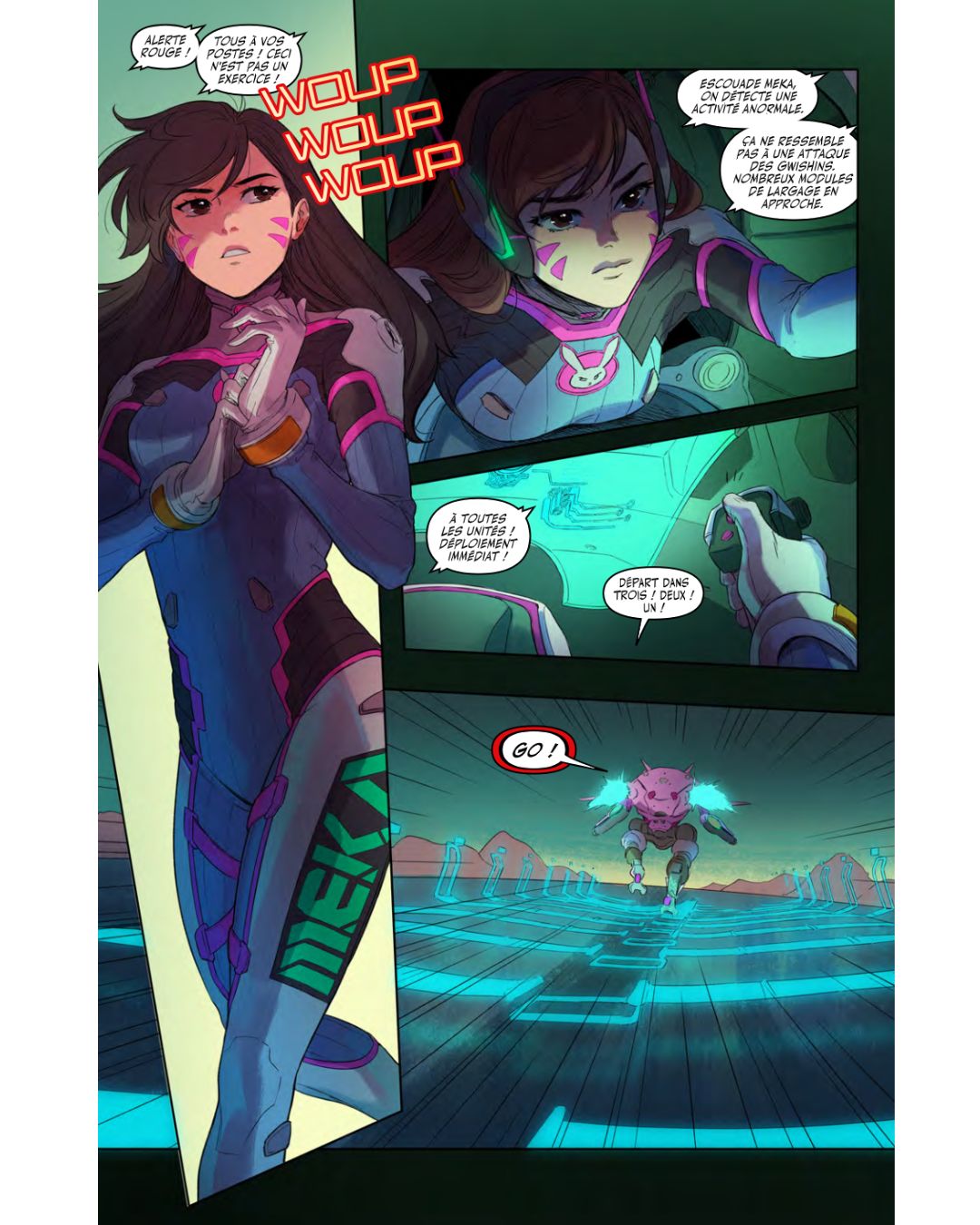 Pensée pour les fans d’Overwatch avant tout, cette série fait la part belle aux techniques et capacités phares des héros qui parleront aux connaisseurs. Niveau mise en scène, la découpe des cases se montre particulièrement dynamique et n’hésite pas à quelques facéties ; comme s’étendre sur l’intégralité de la page en rognant au maximum les bords. Une mise en page particulièrement inspirée qui sert clairement le récit en lui donnant un dynamisme vraiment plaisant.