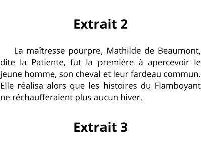 L’adolescent ramène sa dépouille. Mathilde la Patiente, qui fait partie de leur ordre, essaie de découvrir ce que le Flamboyant, qui était comme un père pour elle, a transmis à Roland avant de mourir. Mais le jeune homme ne doit le révéler qu’au Ténébreux, l’un des plus vieux Haut-Conteurs qui vit toujours. La jeune femme n’apprécie guère que Roland endosse la Cape Pourpre, lui qui n’a suivi aucune formation. Toutefois, il s’agit de la volonté de son mentor, elle ne peut s’y opposer.