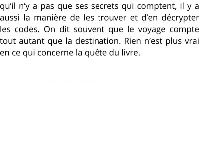 Il y a de belles envolées littéraires par moments ; ce roman est une oaristys écrite avec passion. Une lettre d’amour à l’histoire, aux contes, au fantastique, saupoudré d’aventure. On perçoit l’engagement des auteurs dans cette œuvre, qui allie habilement deux esprits distincts grâce à une belle amitié.