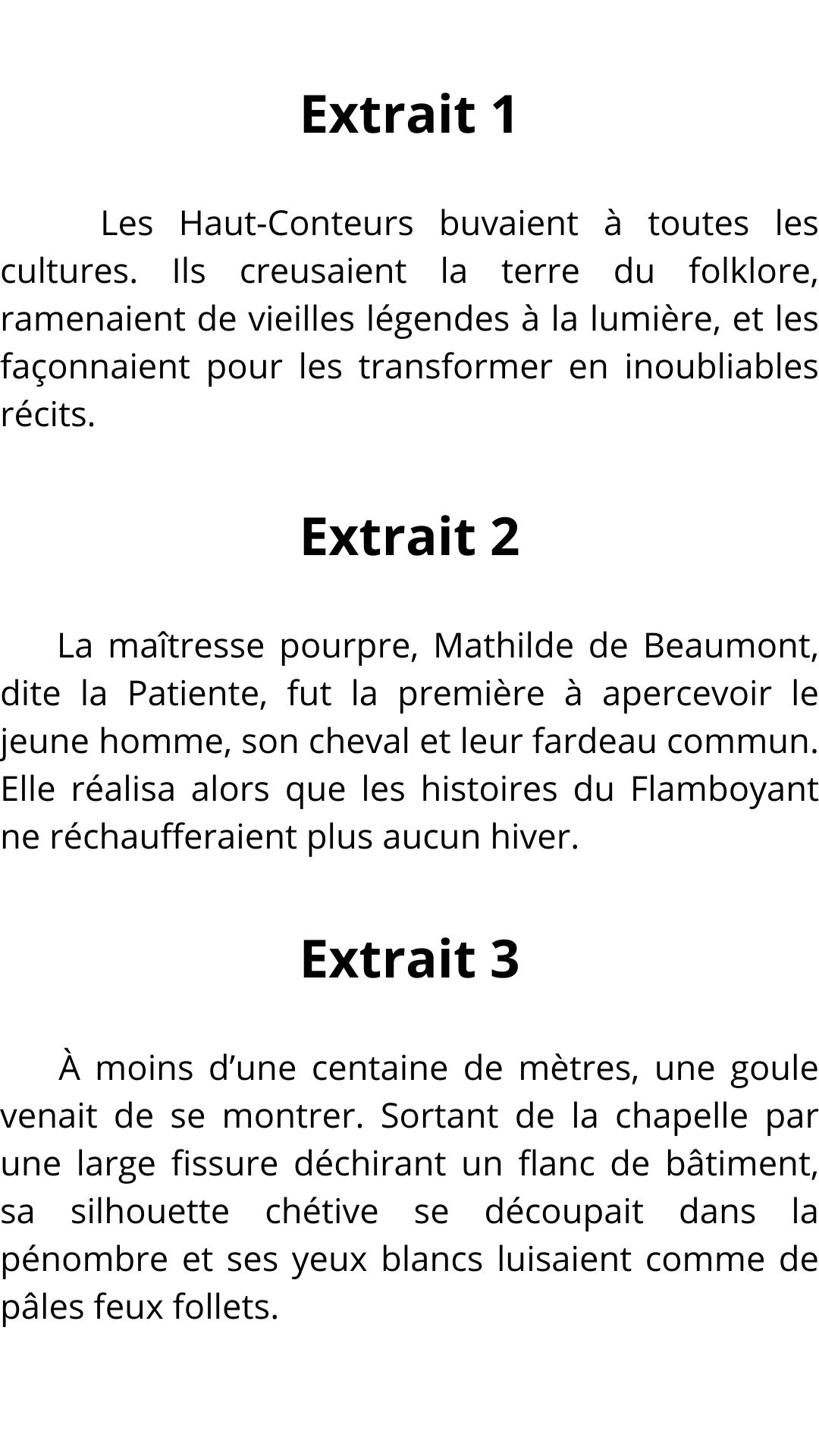 L’adolescent ramène sa dépouille. Mathilde la Patiente, qui fait partie de leur ordre, essaie de découvrir ce que le Flamboyant, qui était comme un père pour elle, a transmis à Roland avant de mourir. Mais le jeune homme ne doit le révéler qu’au Ténébreux, l’un des plus vieux Haut-Conteurs qui vit toujours. La jeune femme n’apprécie guère que Roland endosse la Cape Pourpre, lui qui n’a suivi aucune formation. Toutefois, il s’agit de la volonté de son mentor, elle ne peut s’y opposer.