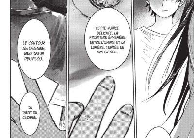 Autre problème de taille : les proportions ! Dans un manga centré sur l’art, ça déconcerte… Notamment les doigts : certains minuscules, d’autres trop longs.