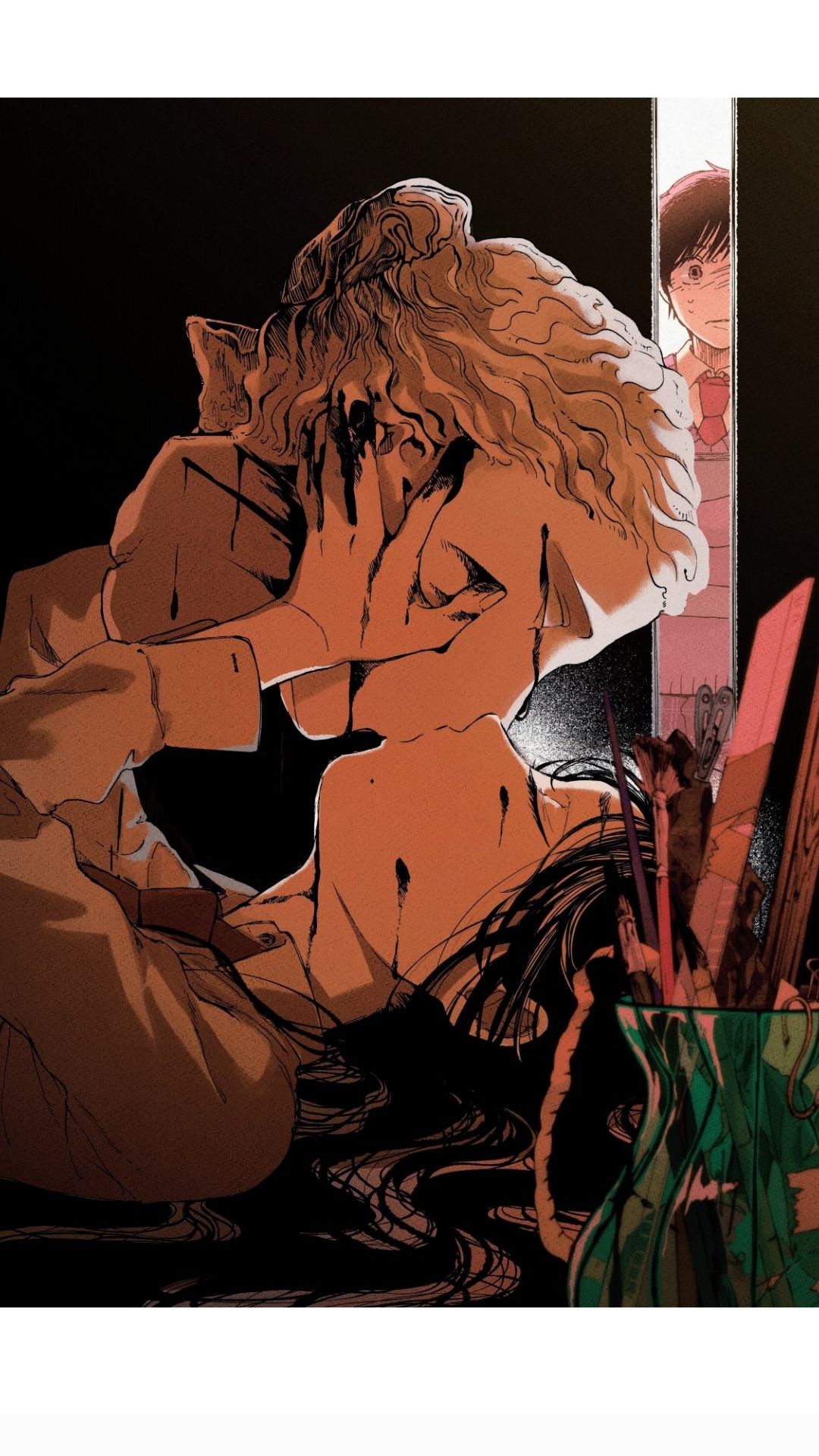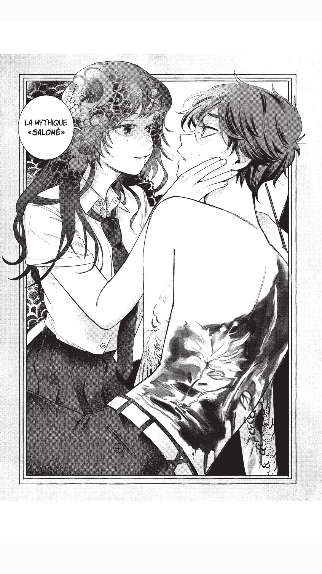Maintenant que cette parenthèse historique est close, revenons donc à ce manga. Le volume 2 est une représentation de Naomi qui tient la tête de Renji comme si elle était décapitée, le pinceau faisant office de plateau. Si l’allégorie peut sembler intéressante, il n’y a aucun développement derrière. Naomi comprend la jalousie de Renji ; si elle avait eu une personnalité machiavélique, elle aurait pu obtenir son partenaire, se l’approprier corps et âme, encore que le cœur me semble plus indiqué visuellement. La jalousie n’animait pas Salomé, qui n’a fait que transmettre le souhait de sa mère. Lorsque Jean le Baptiste a dit à Hérode : « Il ne t’est pas permis d’avoir la femme de ton frère. » Hérodiade ne l’a pas supporté (par ailleurs, elle a eu Salomé avec un autre oncle, précédemment).