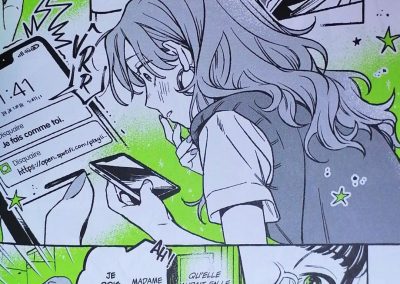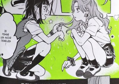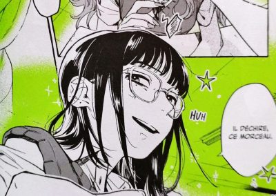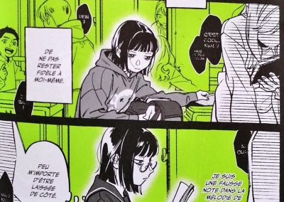 La romance entre Aya et Mitsuki attendrit forcément. Au-delà de sa timidité, j’ai aimé cette audace dont elle peut faire preuve. Et Aya prouve que ce ne n’est pas une fille superficielle, elle n’écoute pas les mêmes musiques que ses amies, elle a les siennes qui affirment ses propres goûts, issus d’une autre époque pour la majorité.