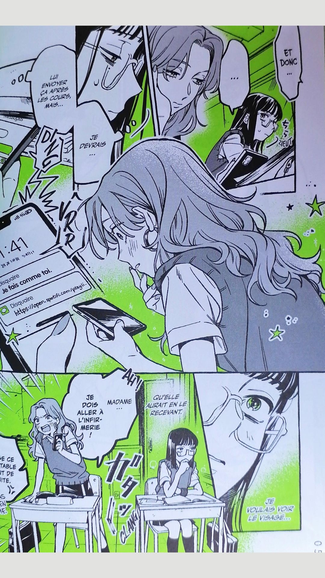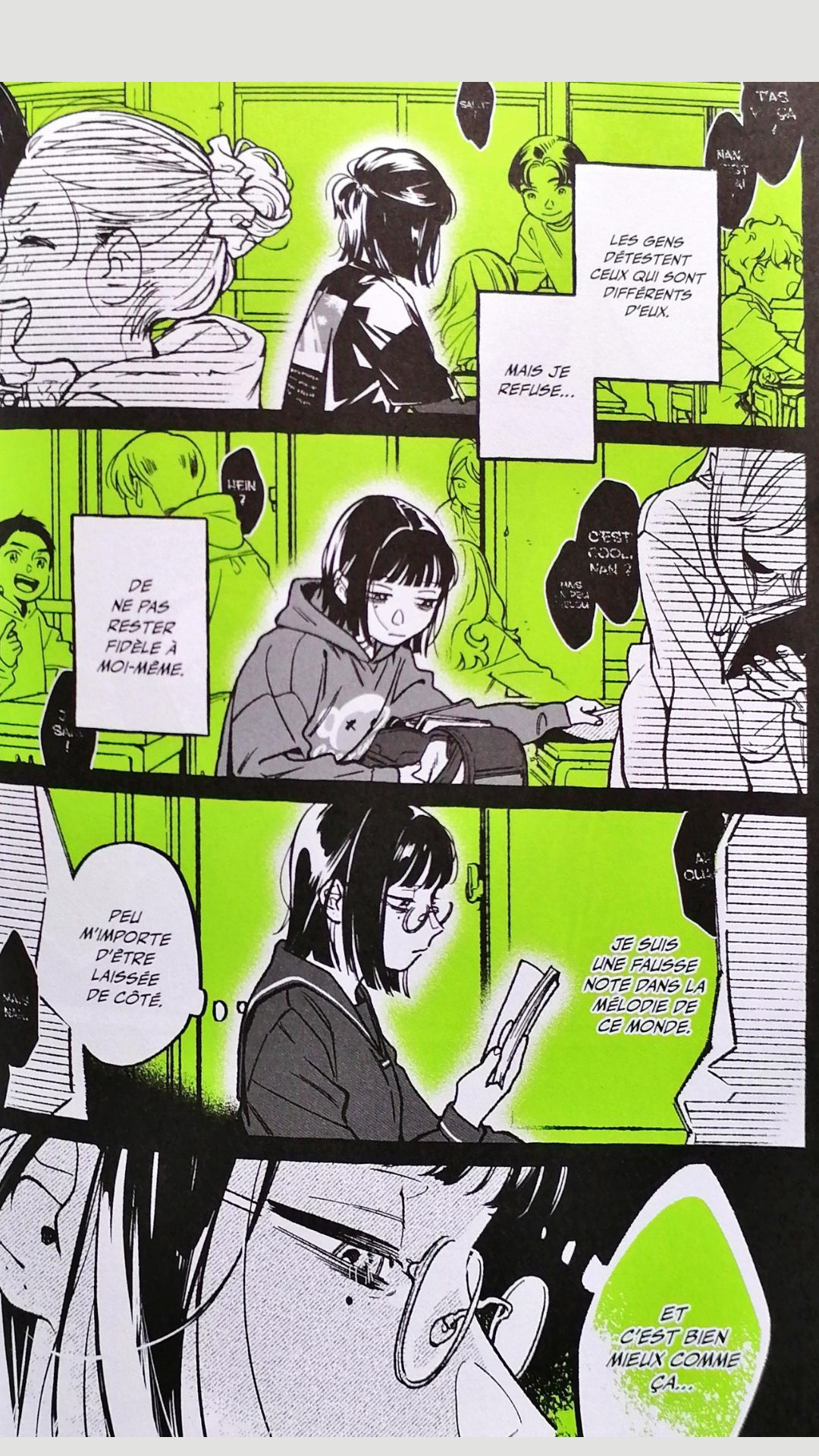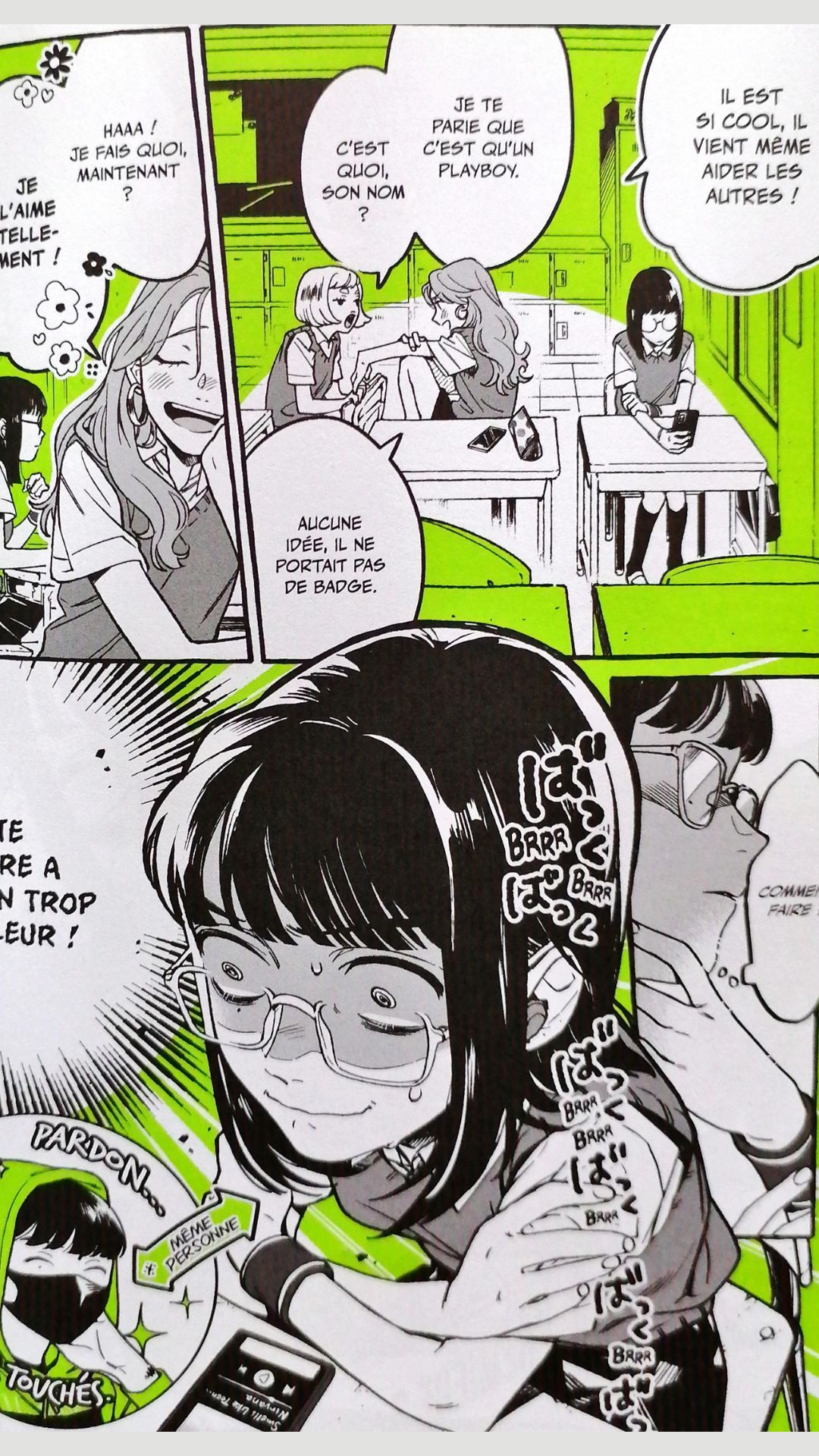 La romance entre Aya et Mitsuki attendrit forcément. Au-delà de sa timidité, j’ai aimé cette audace dont elle peut faire preuve. Et Aya prouve que ce ne n’est pas une fille superficielle, elle n’écoute pas les mêmes musiques que ses amies, elle a les siennes qui affirment ses propres goûts, issus d’une autre époque pour la majorité.