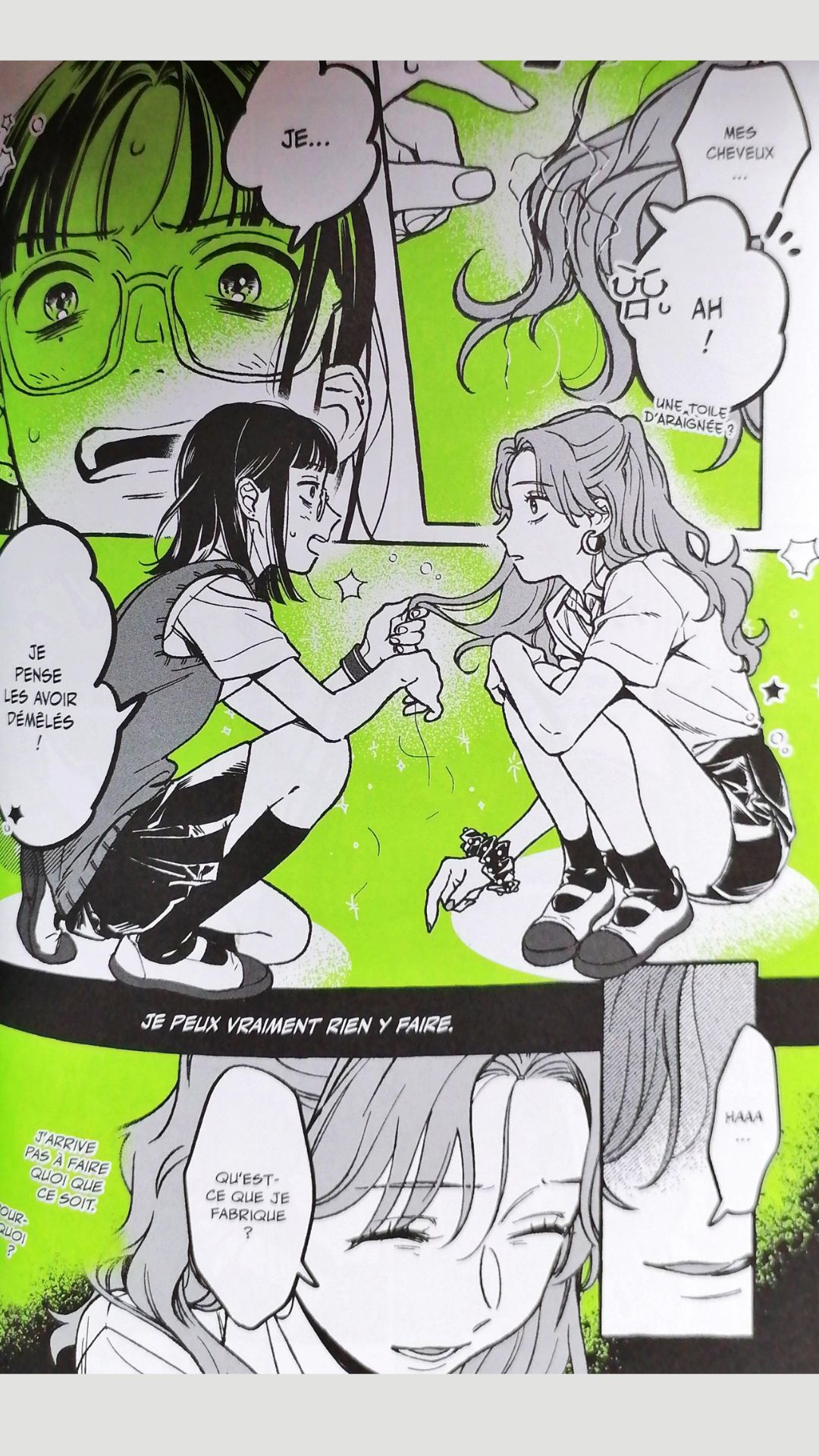 Énorme point fort de ce manga : sa mise en page sublime. Dynamiques, toutes les planches entremêlent du vert en couleur de fond, qui anime parfois les regards. Chaque page est vivante ; l’histoire se trouve magnifiée grâce à la disposition des cases pétillante et le superbe style de dessin.