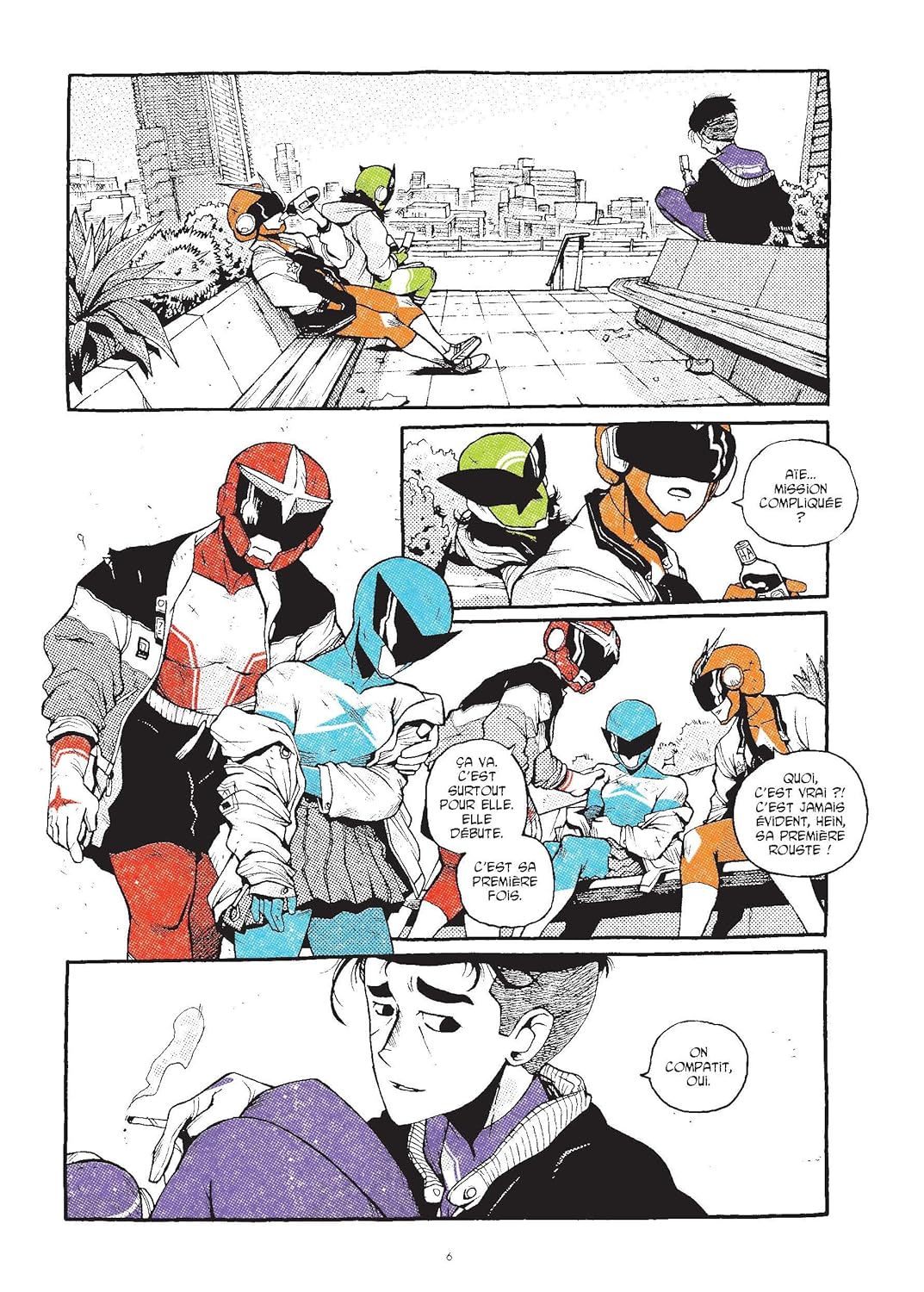 Mathieu Bablet, à l’écriture, ne cherche ni à émouvoir gratuitement, ni à rejouer les codes du genre pour mieux les parodier. Il démonte, décortique, puis reconstruit le mythe sentai avec une mélancolie tranchante. Chaque flashback agit comme une gifle chromatique : couleurs saturées, poses grandiloquentes, slogans hurlés dans le vide, compositions symétriques d’une précision quasi militaire… C’est un théâtre de lumière et de bruit, figé dans une forme de perfection grotesque, comme un générique de dessin animé trop bien remastérisé pour son propre bien.