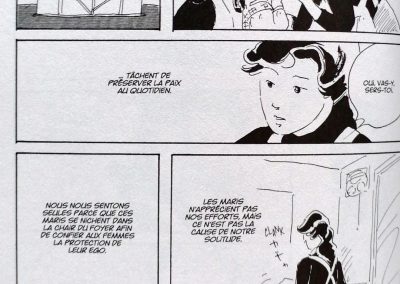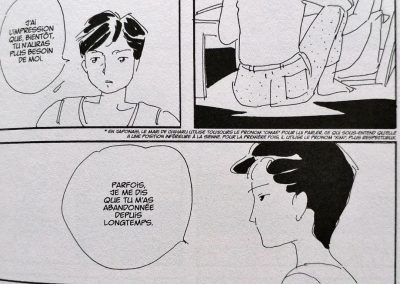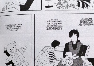 Ces 384 pages témoignent de l’évolution de Chiharu, davantage de rébellion que l’on sent croître au fil du temps. Lorsqu’elle est malade, cela contrarie son époux qui exige toujours autant, alors elle songe : « Vivement qu’il parte travailler. Je veux me reposer. » Parfois elle rêvasse, trouver l’amour autre part, se libérer de cette situation qui la plonge dans une solitude tellement intense… Mais Chiharu ne fléchit jamais, car c’est une femme extrêmement loyale et surtout impliquée dans son rôle de mère.