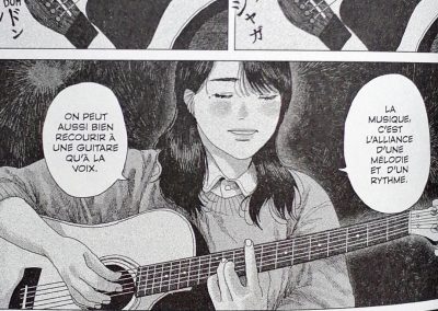La musique occupe une place centrale dans ce manga. Une forme de catharsis qui relie les individus entre eux. Une liste des œuvres citées est disponible à la fin.