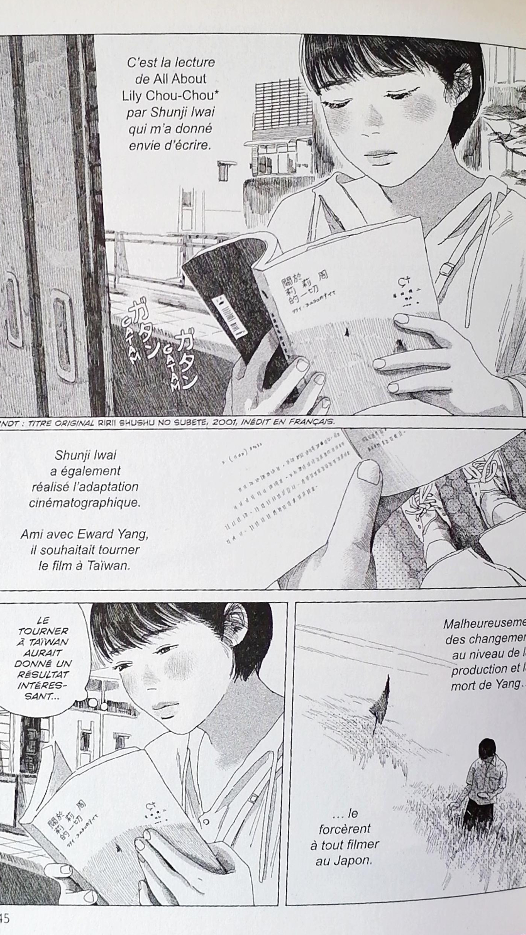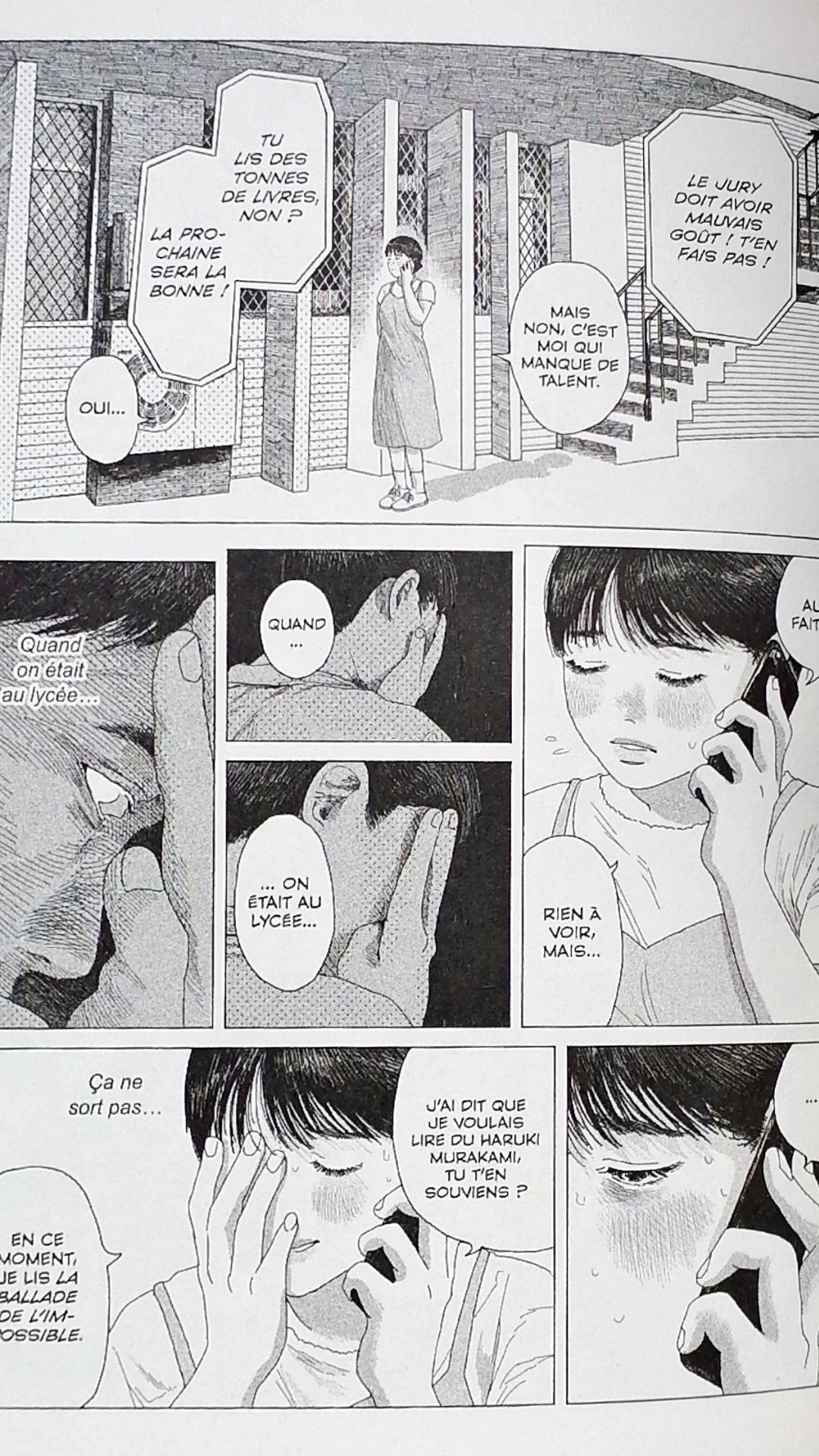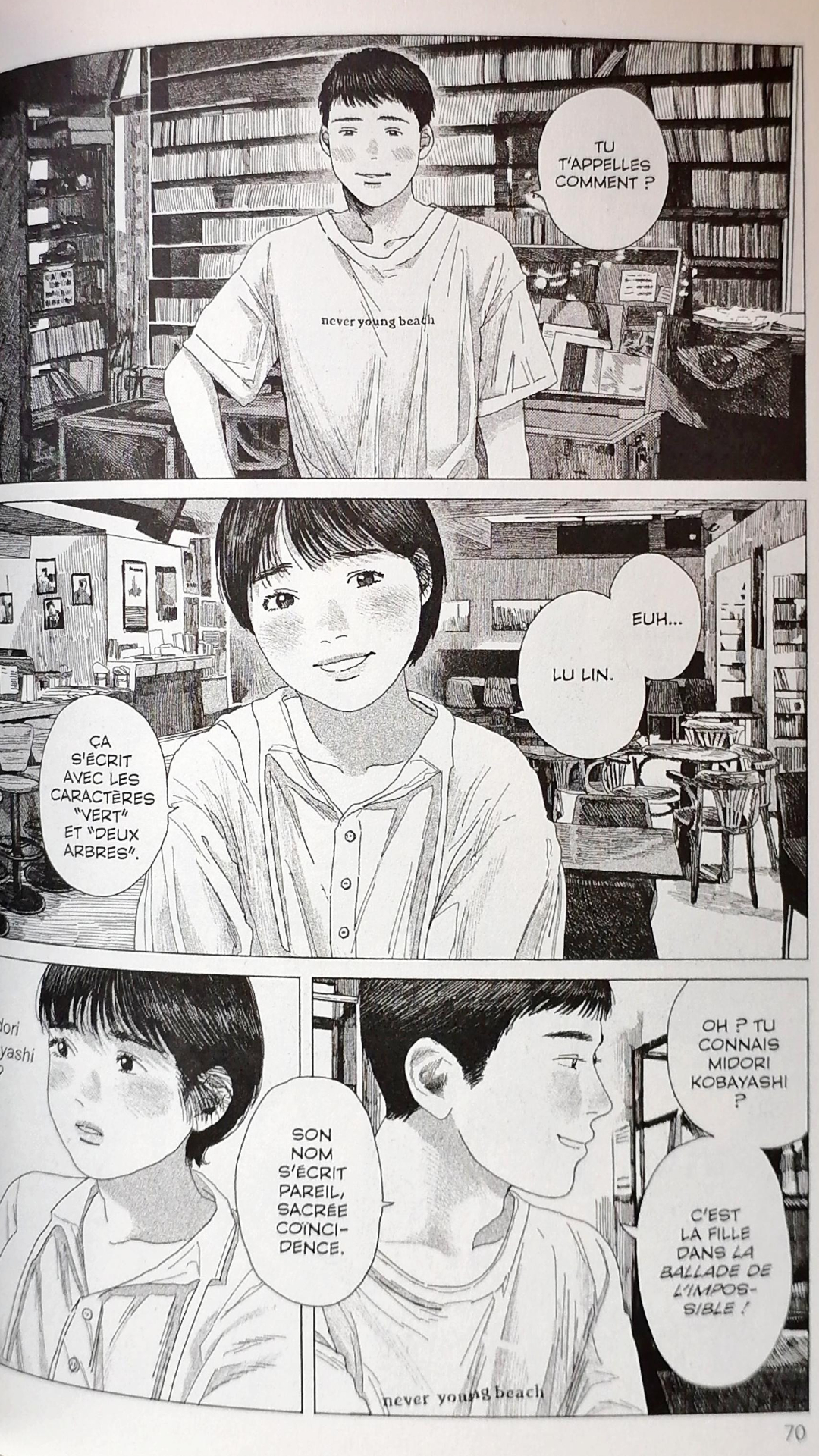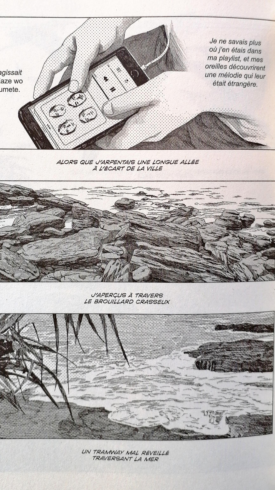 Graphiquement, les effets d’ombre et les hachures apportent du dynamisme à l’ensemble dans un style réaliste. L’auteure déploie les cases pour renforcer la contemplation : elles sont larges, permettent aux émotions de s’épanouir. Beaucoup d’entre elles ne contiennent aucun dialogue, invitant à écouter la musique intérieure de Lu. Celle qu’elle écoute, mais aussi celle de ses sentiments. Les fameux bruits blancs sont mieux expliqués dans le tome 2 et Lu compare Nanjun à son bruit blanc, capable de l’apaiser. Son amour est délicat, doux-amer, car il n’est pas réciproque.