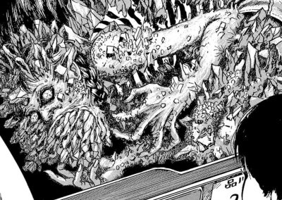 Avec Tombes, la composition des images joue aussi un rôle essentiel dans le rythme de la narration. Les cases s’étendent pour capturer l’ampleur des décors tout en soulignant la solitude des personnages, accentuant la sensation d’un monde où le lecteur, comme les personnages, n’a aucun contrôle sur l’inexorable progression de l’horreur. C’est ici une marque de fabrique d’Ito : rendre visible l’invisible, qu’il s’agisse de la peur latente ou d’une mutation corporelle extrême, en utilisant un graphisme aussi oppressant que captivant.