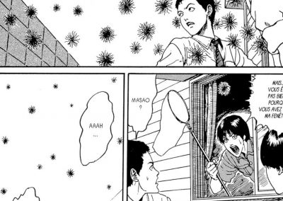 Parmi les récits marquants du recueil, La lignée et La femme limace se démarquent par des traitements variés de la transformation corporelle, une des signatures graphiques d’Ito. La lignée présente des pensées sombres et personnelles qui se matérialisent, flottant autour des personnages, tandis que La femme limace exploite l’aversion instinctive pour la transformation et la perte de contrôle sur son propre corps. Ces histoires courtes sont puissantes dans leur capacité à incarner nos peurs les plus viscérales, donnant au recueil une cohérence malgré la diversité de ses récits.