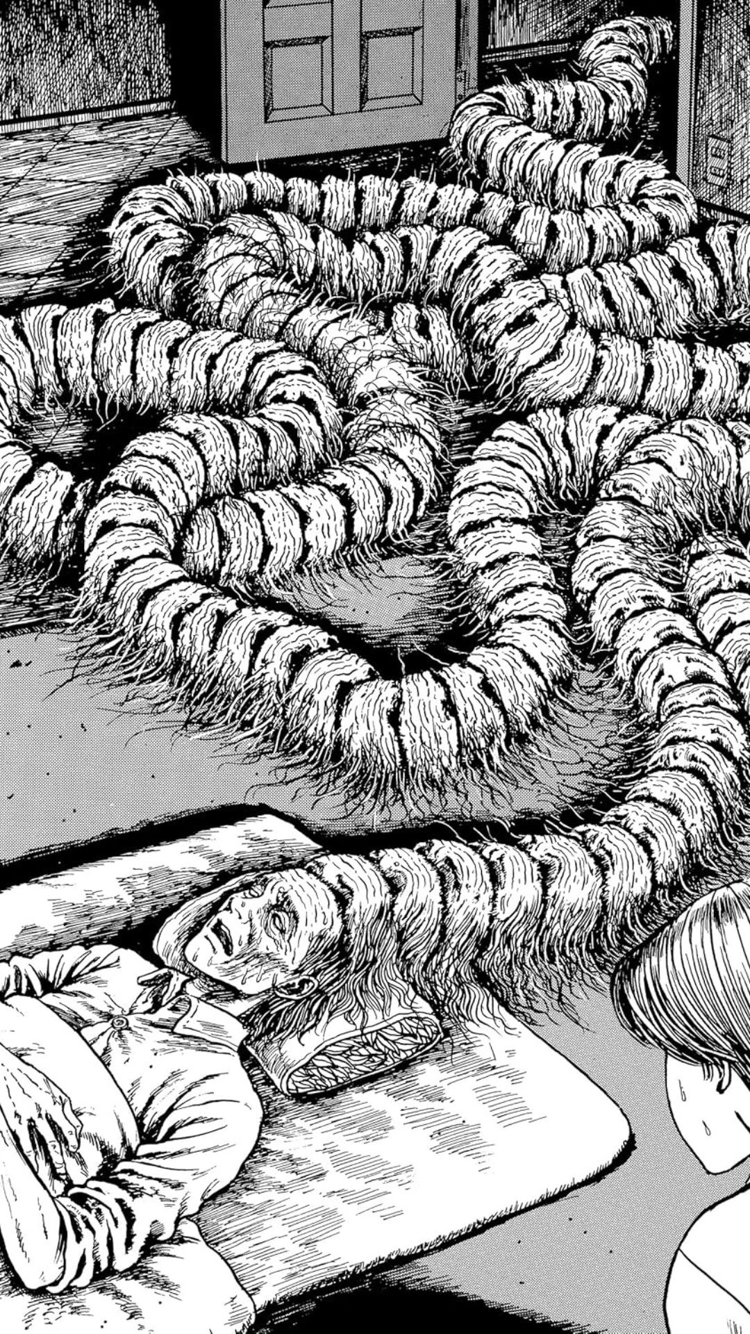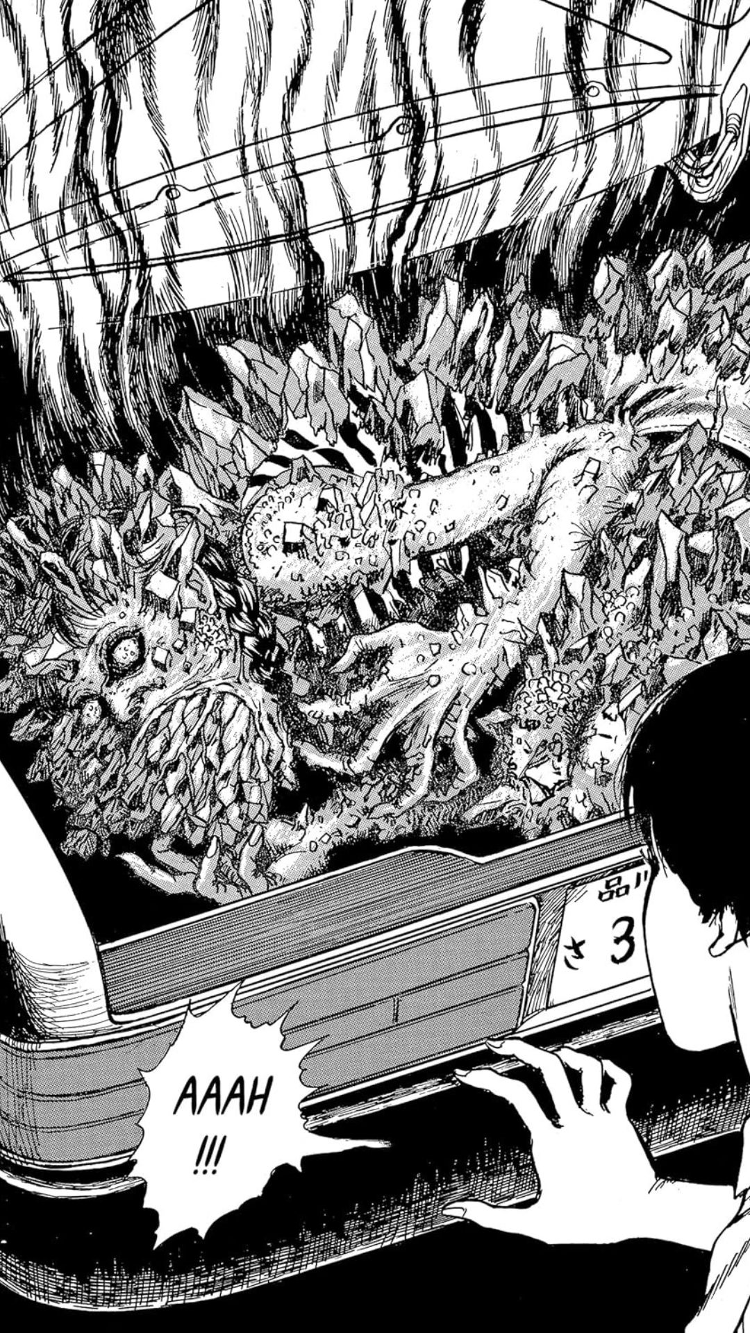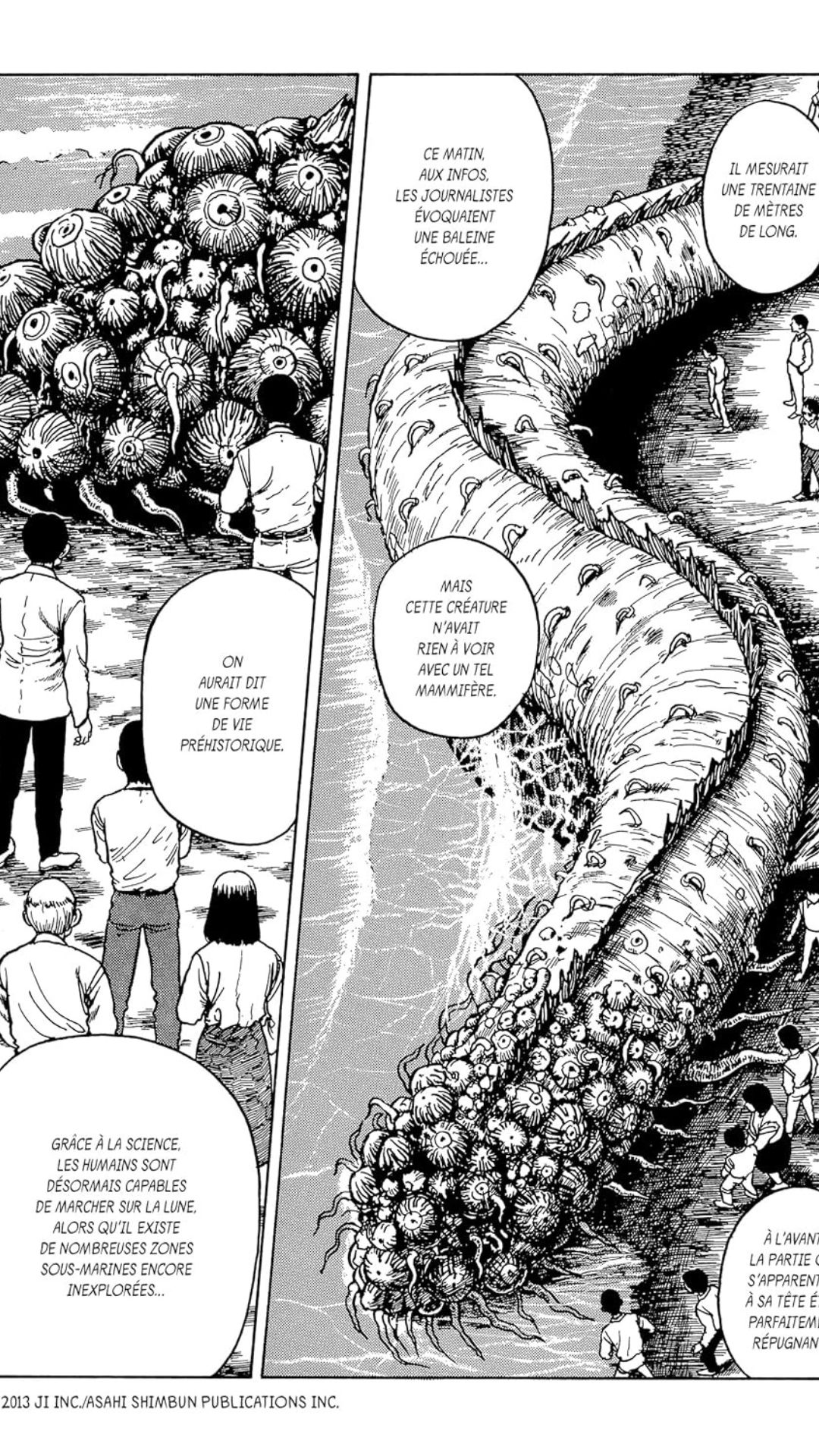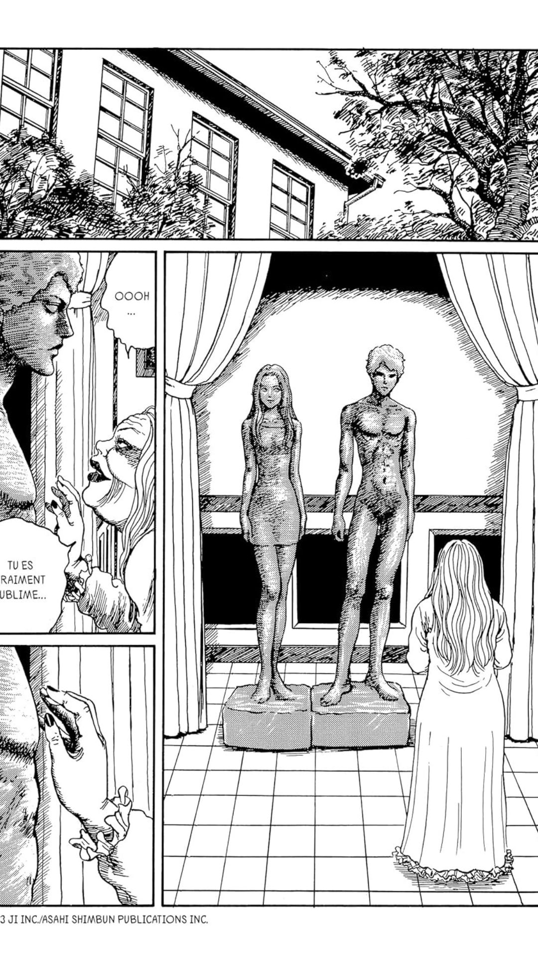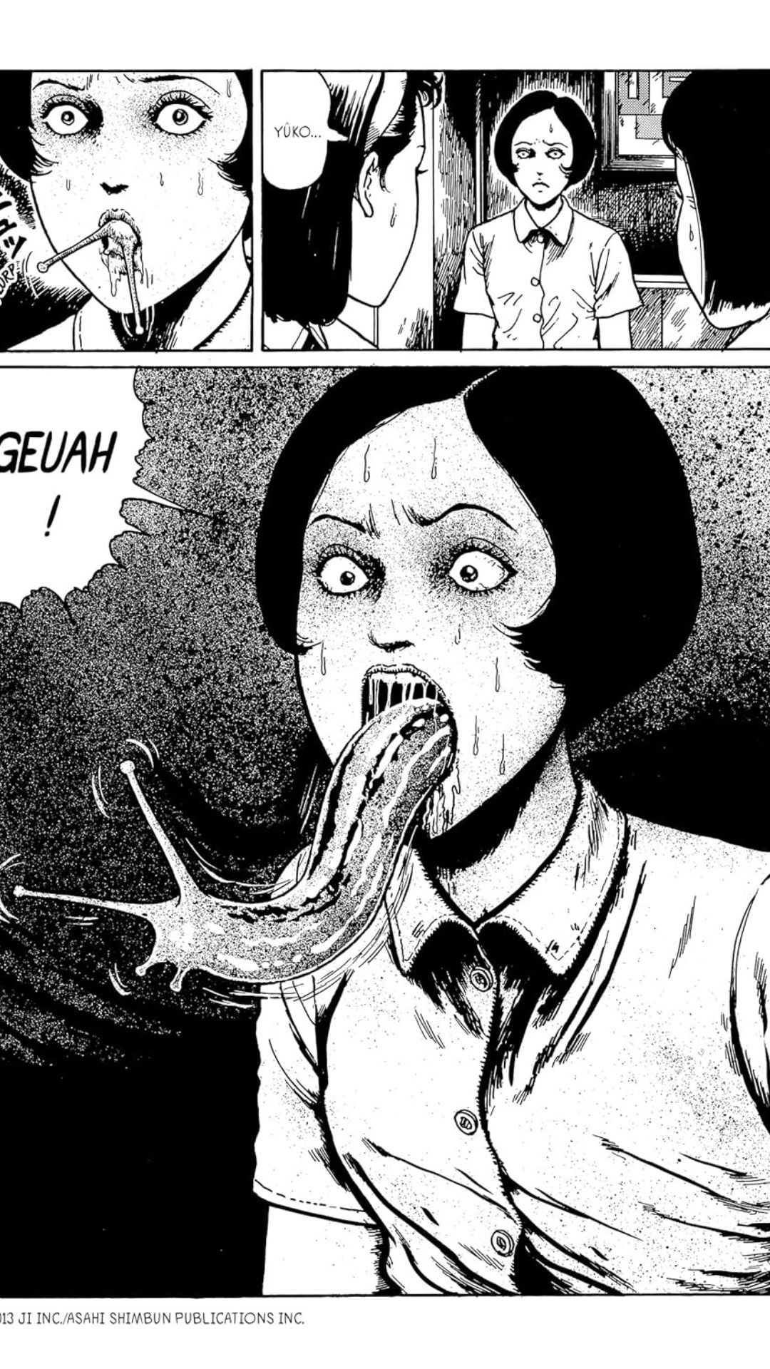 Les éléments de « body horror », marque de fabrique d’Ito, sont également bien présents. Dans le récit La femme limace, par exemple, Ito exploite la répulsion naturelle que provoque la transformation corporelle, rendant le quotidien terrifiant. Ce travail minutieux sur le corps humain, déformé et souvent grotesque, met à mal les notions de normalité et de confort, exacerbant la sensation d’inconfort chez le lecteur.