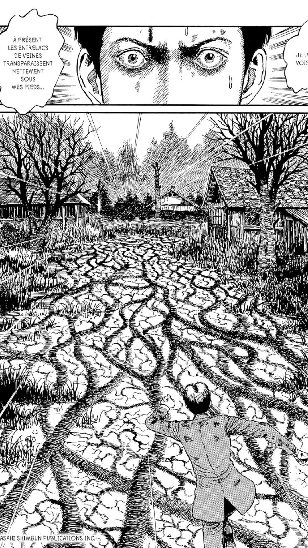 Avec Tombes, la composition des images joue aussi un rôle essentiel dans le rythme de la narration. Les cases s’étendent pour capturer l’ampleur des décors tout en soulignant la solitude des personnages, accentuant la sensation d’un monde où le lecteur, comme les personnages, n’a aucun contrôle sur l’inexorable progression de l’horreur. C’est ici une marque de fabrique d’Ito : rendre visible l’invisible, qu’il s’agisse de la peur latente ou d’une mutation corporelle extrême, en utilisant un graphisme aussi oppressant que captivant.