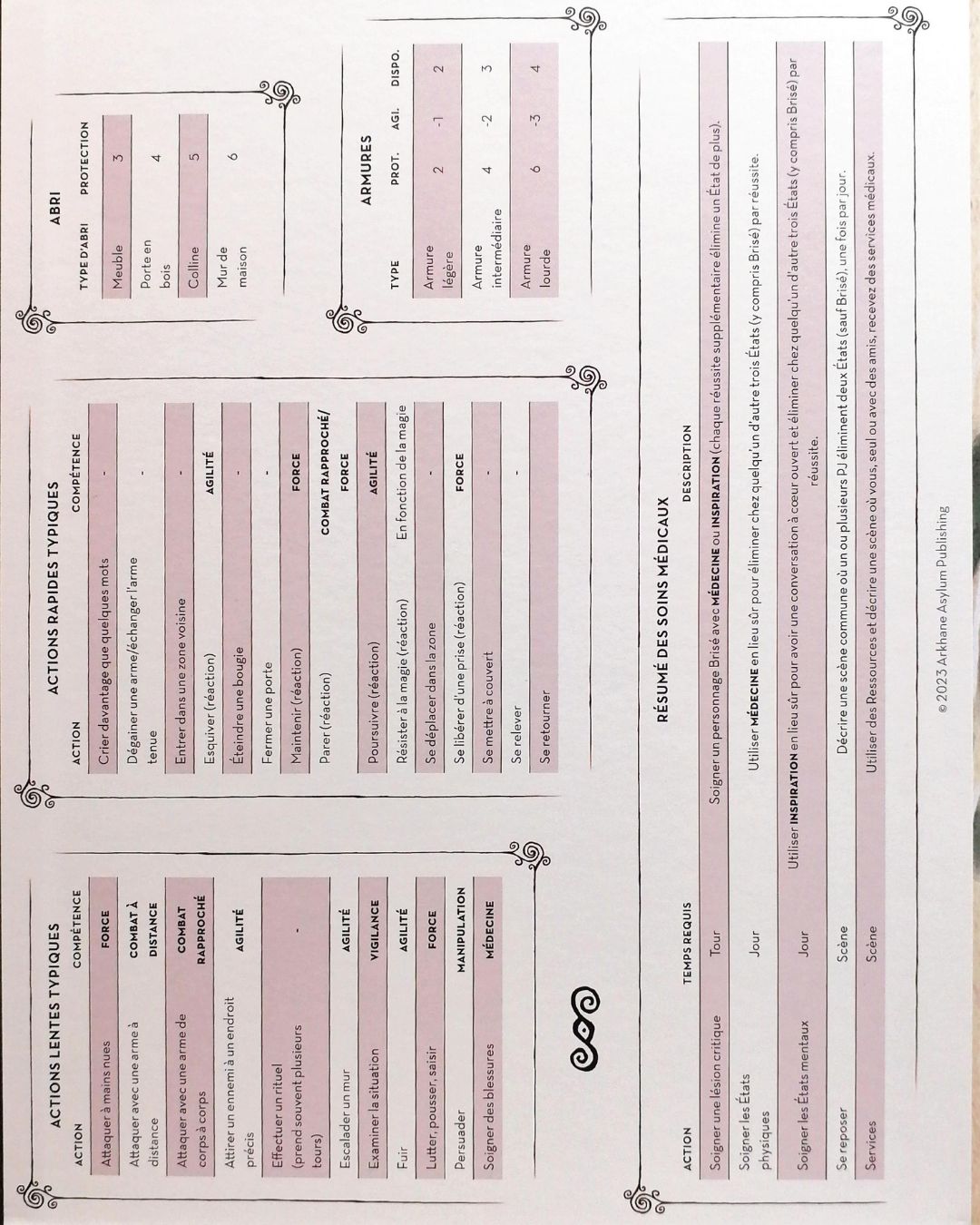 - Physique : Agilité, Combat rapproché et Force.