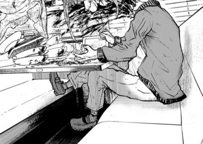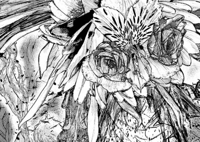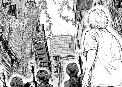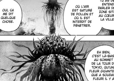 Les vaccins étant trop onéreux et le peuple appauvri, les Jinkas se multiplient comme jamais. Les morts sont graphiques, mêlant floraisons et humeurs pourpres. Le contexte est bien détaillé, on comprend toute la détresse humaine de cette dystopie et on embarque facilement dans ce Tokyo verdissant, curieux d’en savoir plus sur le Jinka de Kayano.